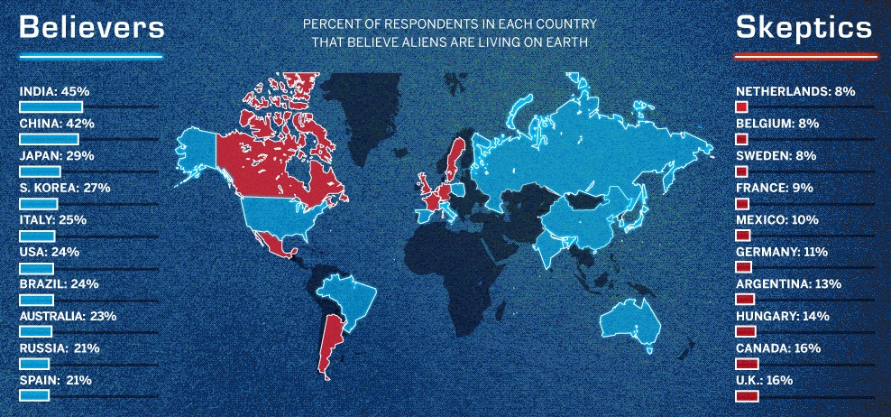 Jestem ciekawa jaki procent ludności wierzy w istnienie innych cywilizacji. Dotarliście może do takich danych? Bardzo proszę o informację
