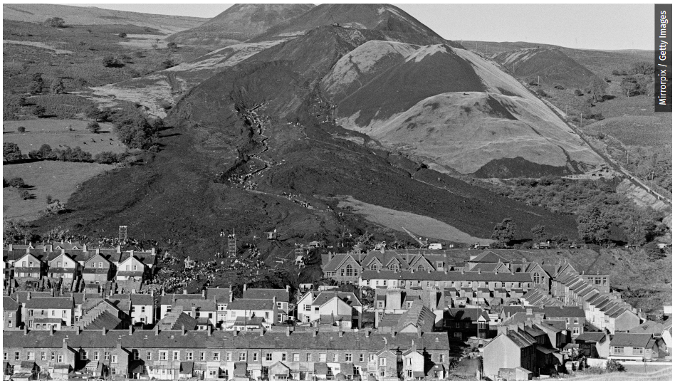 21 października 1966 roku osuwisko z hałdy odpadów kopalnianych runęło na szkołę podstawową w Aberfan, grzebiąc 144 osoby, w tym 116 dzieci.