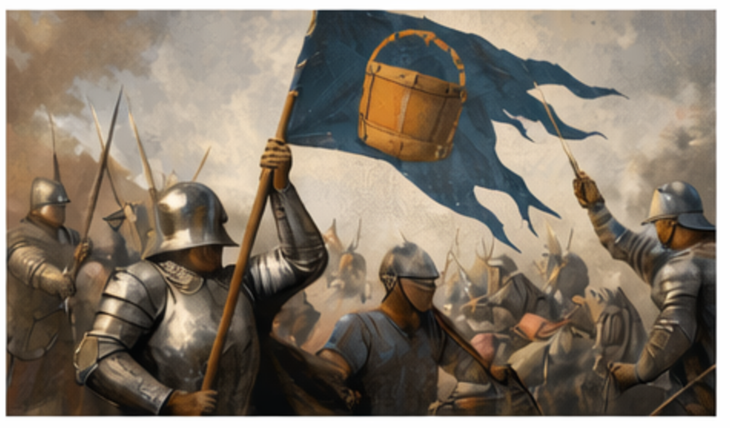 Średniowieczna Italia była mozaiką rywalizujących miast-państw, w których polityka, honor i ambicje splatały się w nieustannych konfliktach. Jednym z najbardziej osobliwych epizodów tej epoki była tzw. Wojna o wiadro – konflikt między Bolonią a Modeną, którego bezpośrednim pretekstem stała się kradzież… drewnianego, dębowego wiadra. Choć brzmi to jak anegdota, w 1325 roku doprowadziło do wielkiej bitwy, w której zginęły tysiące ludzi. Historia ta do dziś pozostaje symbolem absurdu i bezsensu wojny.